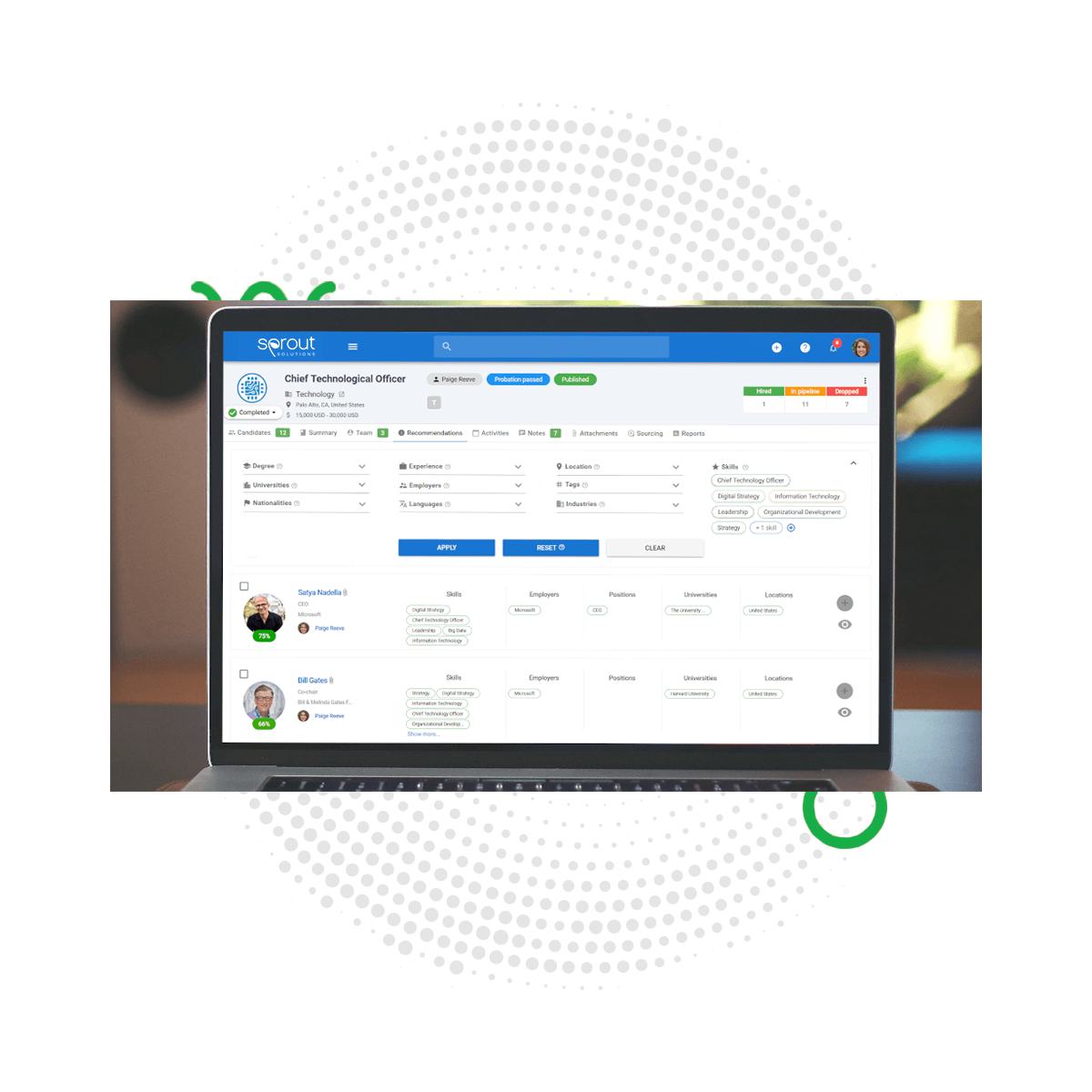 Leverage the AI Recommendation Engine, search tools, filters and candidate scoring system to find the best candidates in your database.