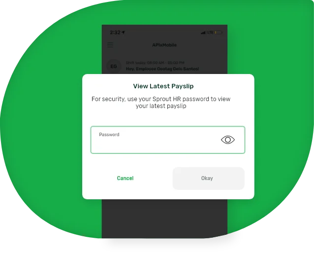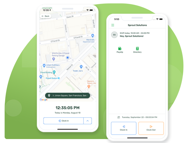 Conveniently clock in and out using your mobile phone through the Sprout Mobile App.